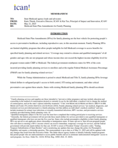 “Medicaid State Plan Amendments (SPAs) for family planning are the best vehicle for protecting people’s access to preventative healthcare, including reproductive care, in this uncertain moment. Family Planning SPAs are limited eligibility programs that allow people ineligble for full Medicaid coverage to access benefits for specified family planning and related services…”